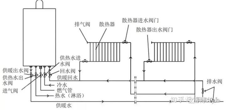 壁挂炉作为热源,其功能是向终端散热器提供热量,该热量通过传输管道传递给终端,然后通过终端散热器传递到室内。房间的恒温状态就是使