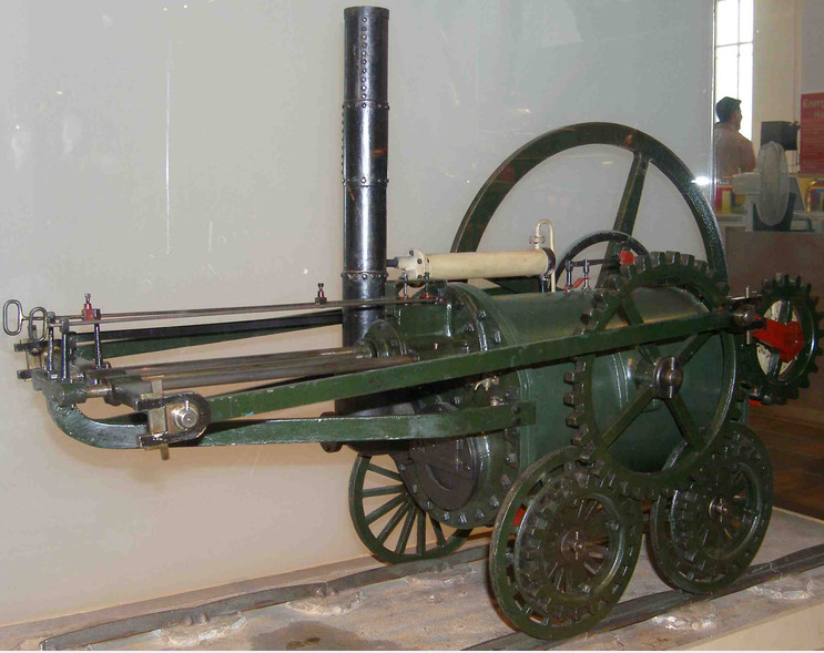1802年,德里维斯克来到中格拉摩根郡的一个铁矿厂里工作,凭着自己高超的技术,研制出了可以不停的抡大锤的高压蒸汽机。经过与钢铁厂老板汉弗莱商量后,他给蒸汽机装了轮子,变成了一个机车。